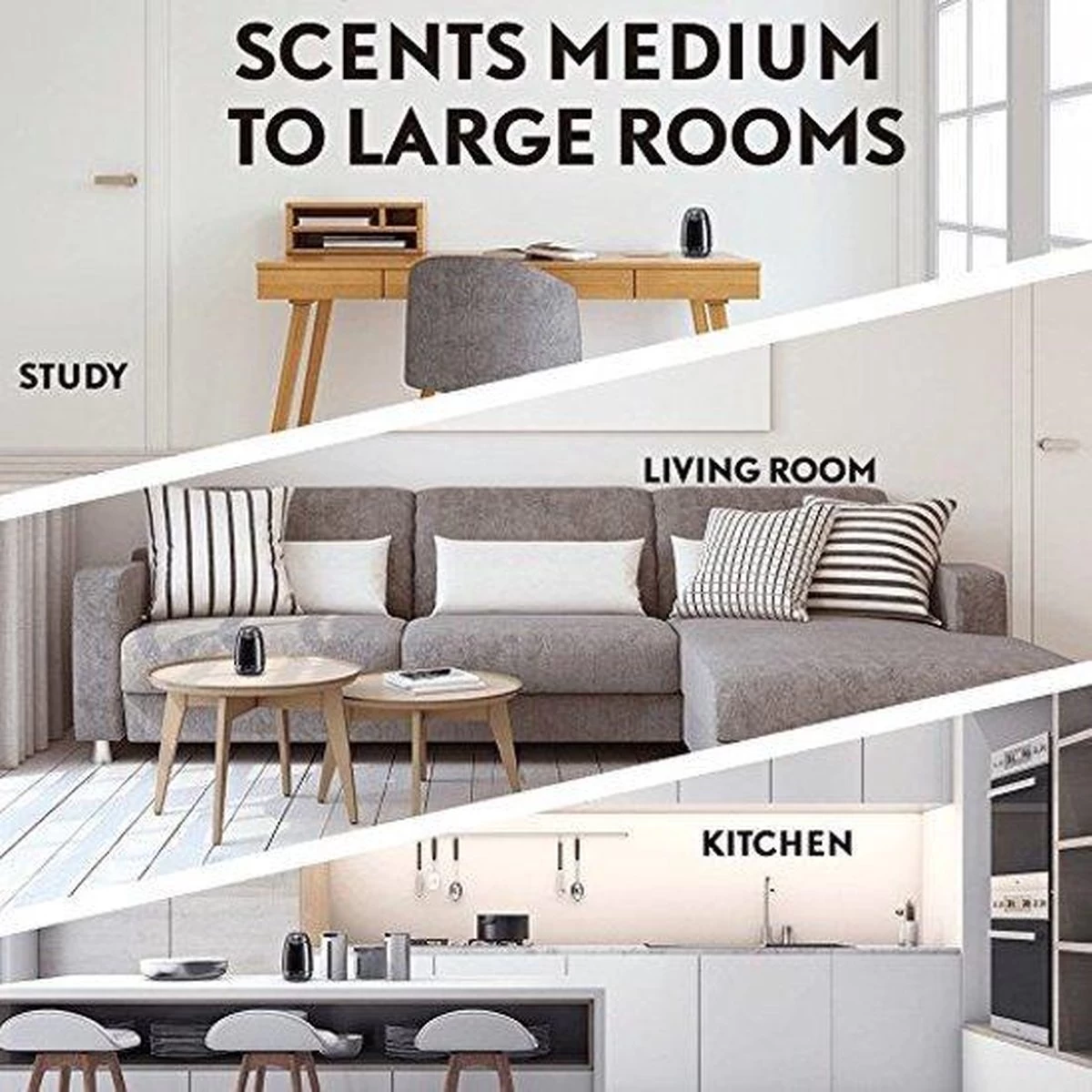 Dankzij de unieke technologie wordt de etherische olie verspreid in een lichte, stijlvolle mist die geruisloos door de ruimte verspreid zonder de olie te verbranden. Het helpt je ontspannen na een lange dag, of je voelt je verfrist in de ochtend. Het is eenvoudig: klik de navulling in de Essential Mist, zet het apparaat aan en geef je over aan de voordelen van aromatherapie, in de kamer naar keuze.