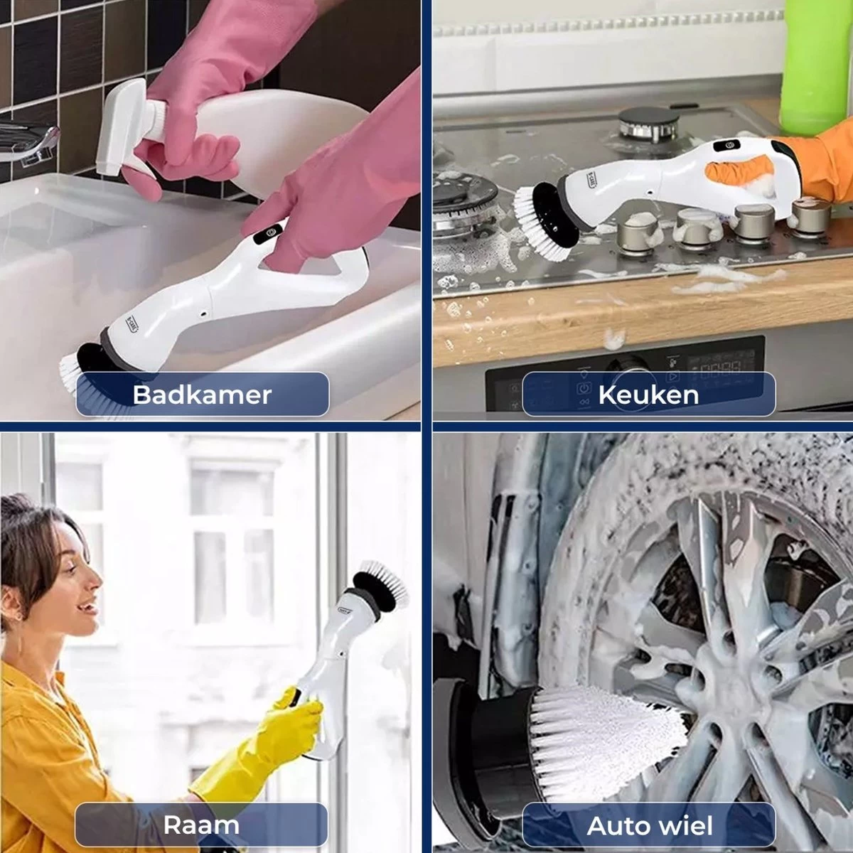 Heeft u ook altijd vlekken op de kraan terwijl u net heeft gepoetst? Bruine aanslag in de wasbak? Bruine voegen tussen de badkamer tegels? Dit is vanaf nu verleden tijd! Met deze multifunctionele wasborstel met maarliefst 4 opzetstukken wordt alles schoner dan schoon. Met z’n krachtige 360° roterende borstel maakt hij alles schoon in een handomdraai. Maak kennis met de B-care Elektrische Multifunctionele Schoonmaakborstel en zeg vaarwel tegen vieze vlekken!