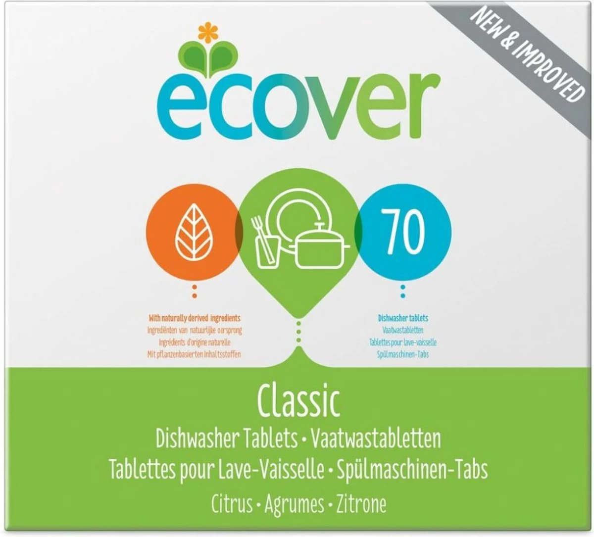 De Ecover Vaatwastabletten Classic zijn biologisch afbreekbare superhelden. Ze rekenen af met aangekoekte etensresten en vet dankzij de krachtige, plantaardige ingrediënten voor een sprankelend schone en streeploze vaat. En zoals altijd, zonder gebruik van fosfaten.