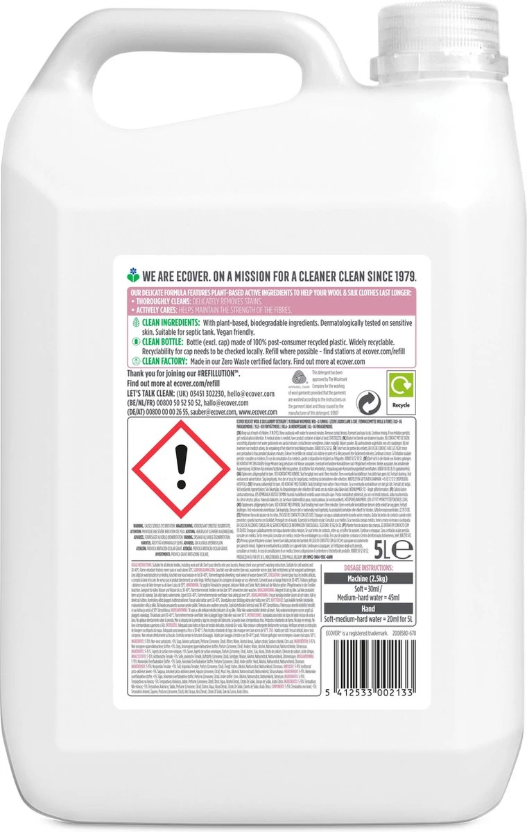 Ecover Wasmiddel – Wol En Zijde Waterlelie & Groene Meloen 110 Wasbeurten – 5L