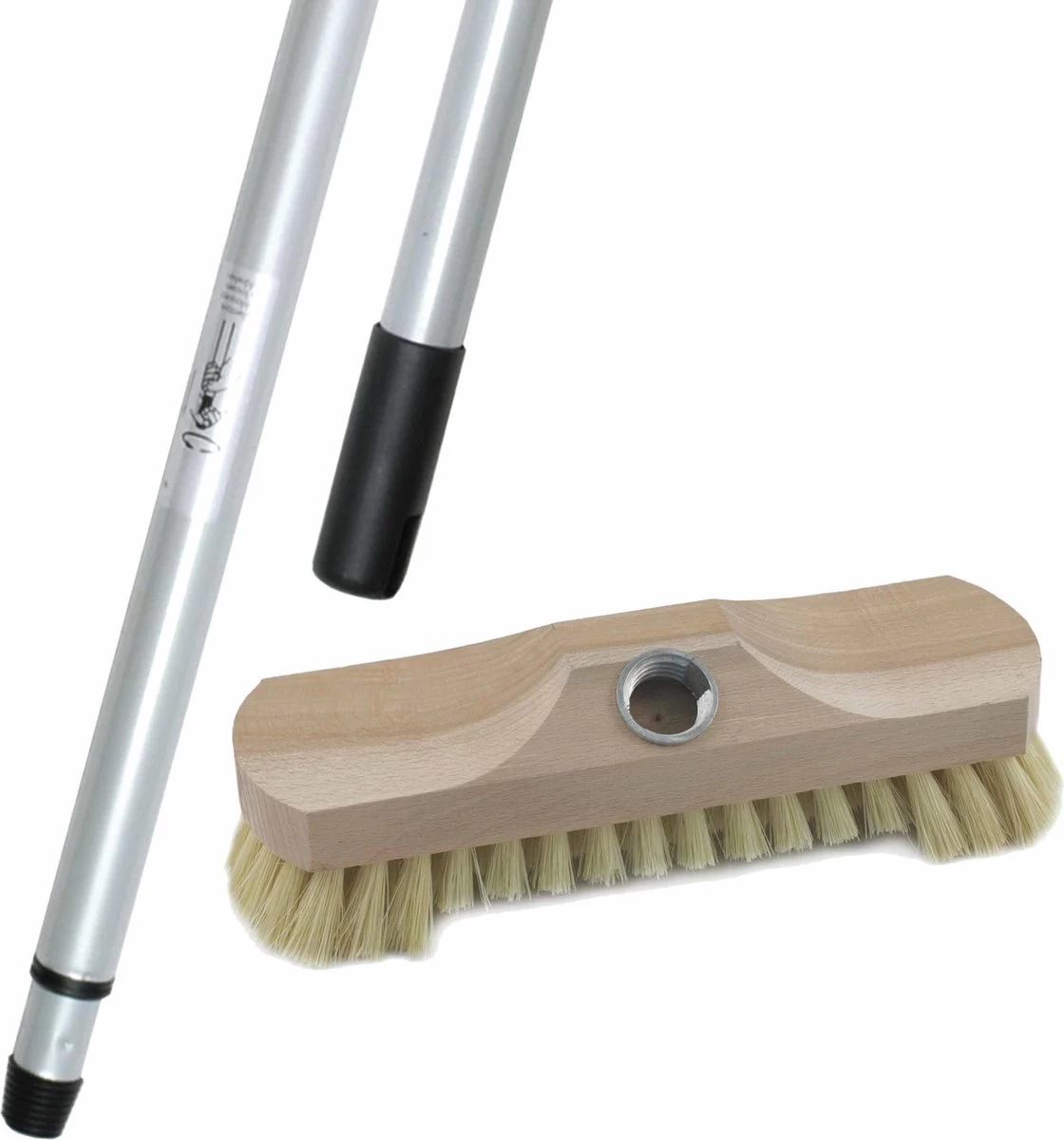 Houten Schrobborstel/schrobber Inclusief Metalen Telescoopsteel Zilver 200 Cm