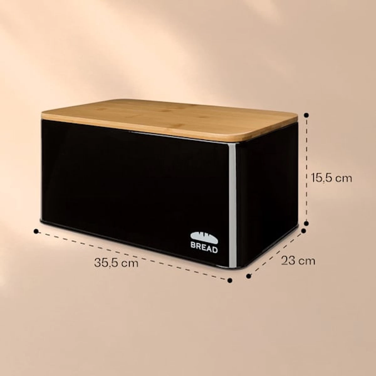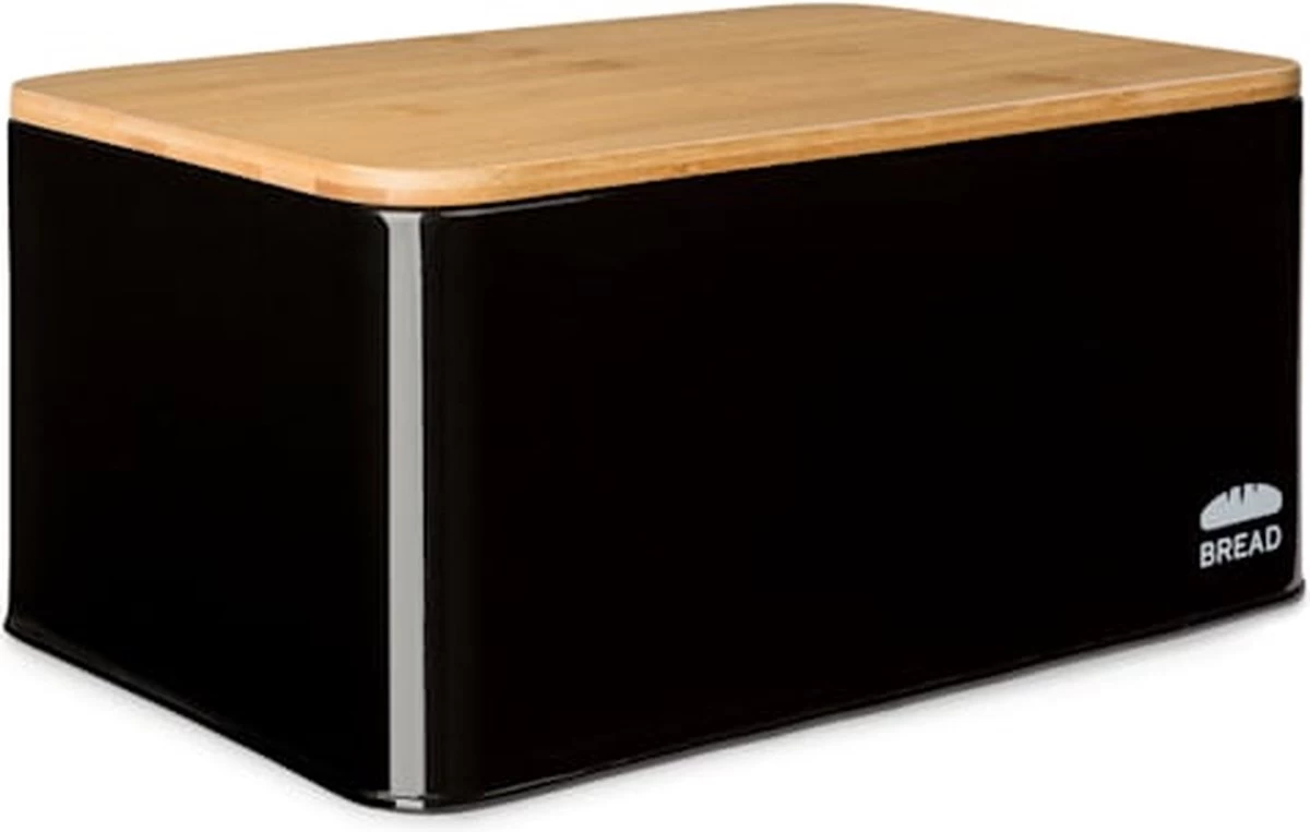 Praktisch en chique! De grote metalen broodtrommel Oklahoma met snijplank in moderne look van Klarstein is niet alleen zeer stabiel en groot genoeg voor het gelijktijdig bewaren van meerdere broden en bakkerijproducten, maar ook een absolute blikvanger in de keuken. Dankzij de ventilatiegaatjes aan de achterkant van de broodbox is voor de belangrijke luchtcirculatie gezorgd. Dat vermindert vochtigheid aan de binnenkant en houdt je brood lang krokant en vers! De praktische en robuuste houten deksel van bamboe kan bovendien als snijplank worden gebruikt. Met afmetingen van 35,5 x 15,5 x 23 cm (BxHxD) past deze broodopslag makkelijk op je sideboard, je keukenblok of in de ruime keukenkast.