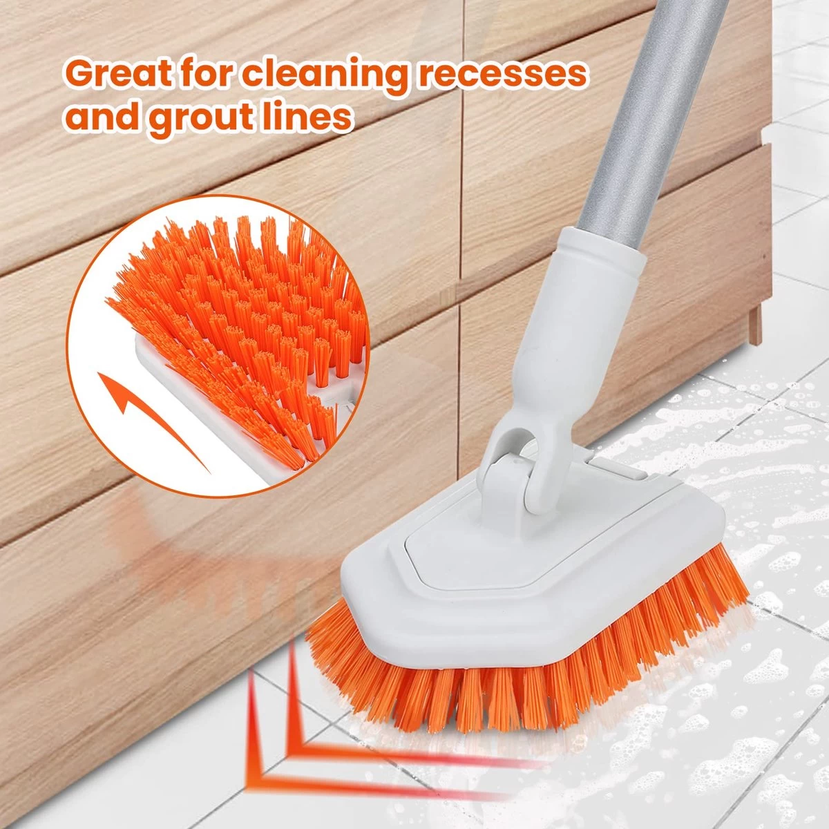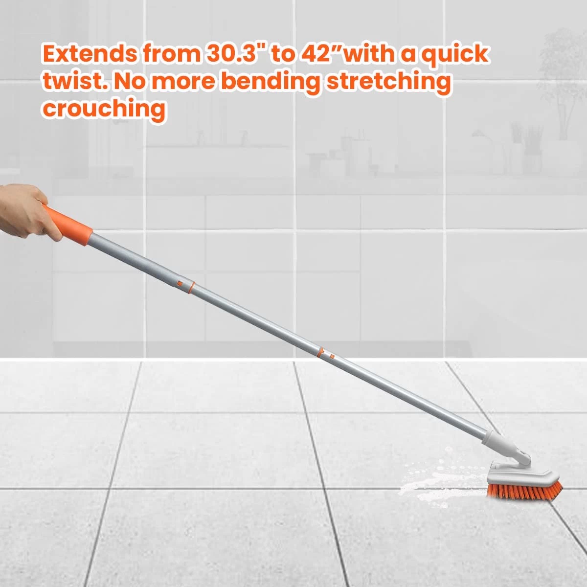 Merkloos Badkamer Reinigingsborstel – Badkamerschrobborstel – Reinigingsborstel – Met Afneembare Telescopische Handgreep En 180° Verstelbare Gezamenlijke Reinigingsborstel – Lange Steel 107 Cm
