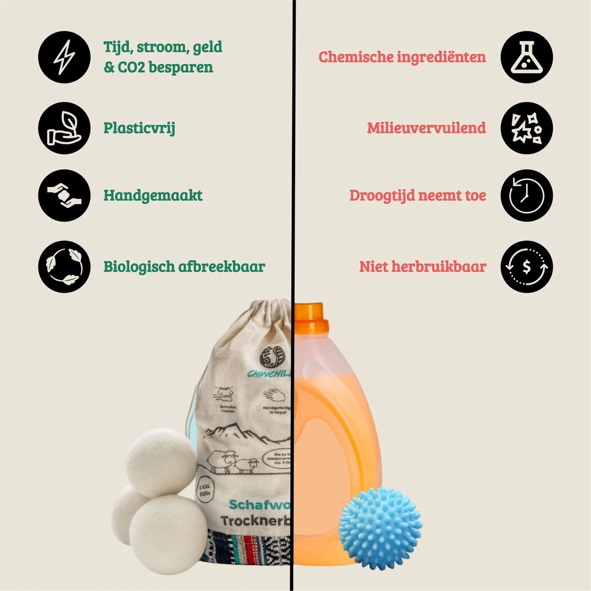 Merkloos Chinchilla® Drogerballen XXL – Set Van 6 Stuks – Herbruikbare Wasdrogerballen – Droogballen – Energiebesparing – Drogerballen Voor Wasdrogers – Wasbollen